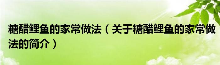 本文關于糖醋鯉魚的家常做法的簡介就講解完畢,希望對大家有所幫助。