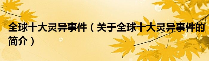 本文關于全球十大靈異事件的簡介就講解完畢,希望對大家有所幫助。