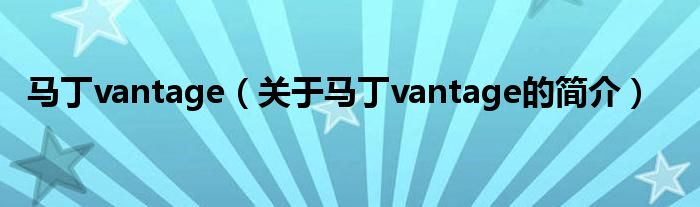 本文關于馬丁vantage的簡介就講解完畢,希望對大家有所幫助。