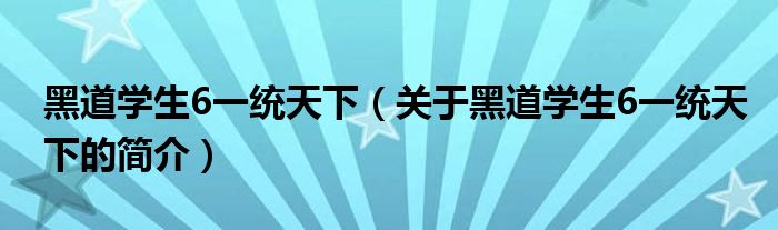 本文關于黑道學生6一統天下的簡介就講解完畢,希望對大家有所幫助。
