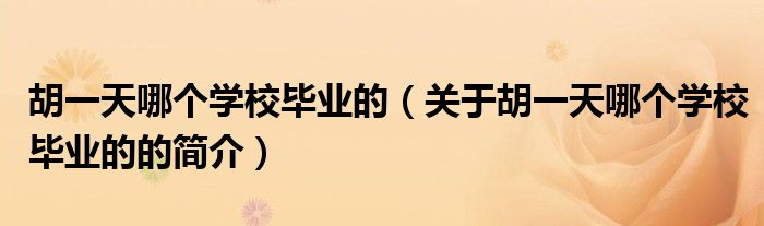 大家好,胡一天哪個學校畢業的,關于胡一天哪個學校畢業的的簡介很多人還不知道,現在讓我們一起來看看吧!