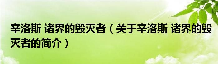 本文關于辛洛斯 諸界的毀滅者的簡介就講解完畢,希望對大家有所幫助。