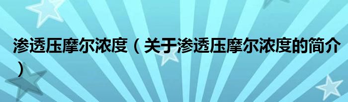 本文關(guān)于滲透壓摩爾濃度的簡(jiǎn)介就講解完畢,希望對(duì)大家有所幫助。