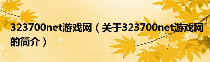 本文關于323700net游戲網(wǎng)的簡介就講解完畢,希望對大家有所幫助。