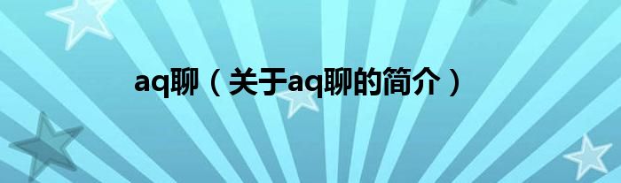 大家好,aq聊,關于aq聊的簡介很多人還不知道,現在讓我們一起來看看吧!