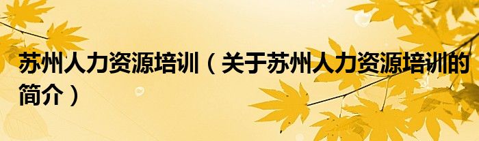 本文關(guān)于蘇州人力資源培訓(xùn)的簡介就講解完畢,希望對大家有所幫助。