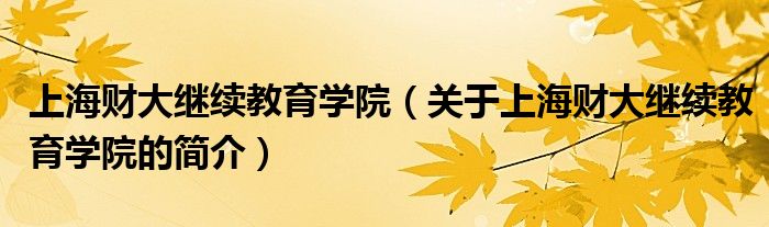 本文關于上海財大繼續教育學院的簡介就講解完畢,希望對大家有所幫助。