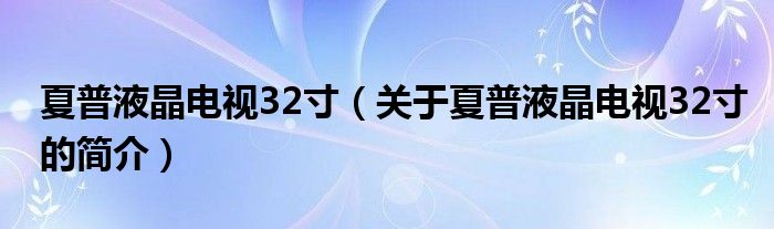 本文關(guān)于夏普液晶電視32寸的簡(jiǎn)介就講解完畢,希望對(duì)大家有所幫助。