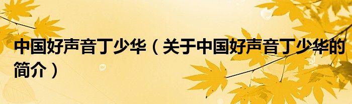 大家好,中國好聲音丁少華,關于中國好聲音丁少華的簡介很多人還不知道,現在讓我們一起來看看吧!