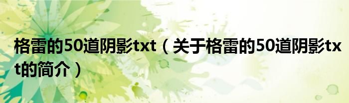本文關于格雷的50道陰影txt的簡介就講解完畢,希望對大家有所幫助。