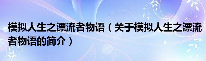 本文關于模擬人生之漂流者物語的簡介就講解完畢,希望對大家有所幫助。