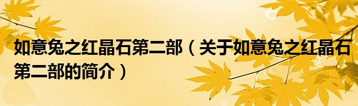 本文關(guān)于如意兔之紅晶石第二部的簡(jiǎn)介就講解完畢,希望對(duì)大家有所幫助。