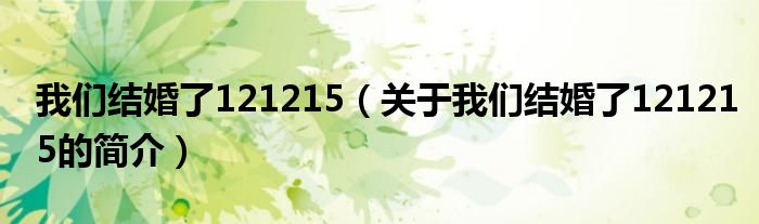 大家好,我們結(jié)婚了121215,關(guān)于我們結(jié)婚了121215的簡(jiǎn)介很多人還不知道,現(xiàn)在讓我們一起來看看吧!