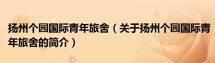 本文關(guān)于揚州個園國際青年旅舍的簡介就講解完畢,希望對大家有所幫助。
