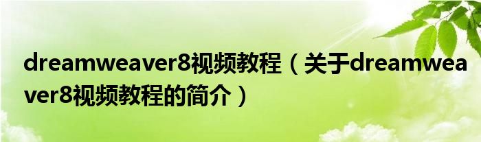 本文關于dreamweaver8視頻教程的簡介就講解完畢,希望對大家有所幫助。