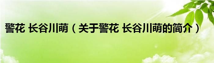 本文關于警花 長谷川萌的簡介就講解完畢,希望對大家有所幫助。