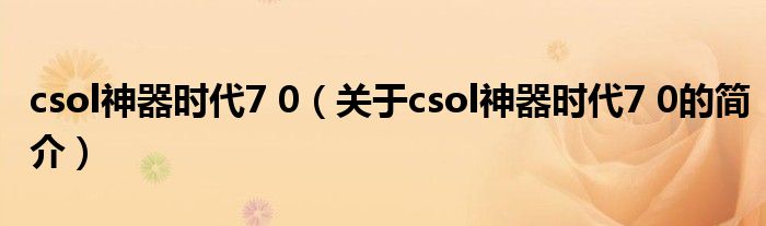 大家好,csol神器時代7 0,關于csol神器時代7 0的簡介很多人還不知道,現在讓我們一起來看看吧!