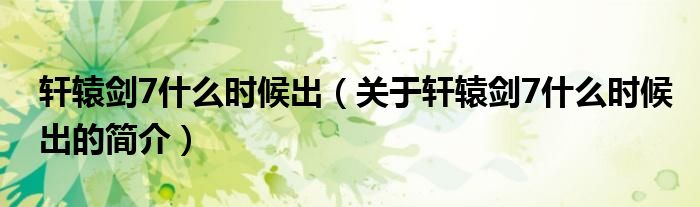 本文關于軒轅劍7什么時候出的簡介就講解完畢,希望對大家有所幫助。