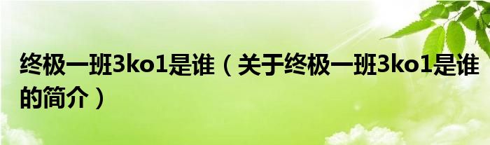 本文關(guān)于終極一班3ko1是誰的簡介就講解完畢,希望對大家有所幫助。