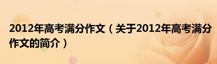 本文關于2012年高考滿分作文的簡介就講解完畢,希望對大家有所幫助。