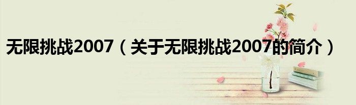 本文關(guān)于無(wú)限挑戰(zhàn)2007的簡(jiǎn)介就講解完畢,希望對(duì)大家有所幫助。