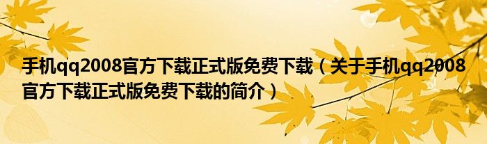本文關于手機qq2008官方下載正式版免費下載的簡介就講解完畢,希望對大家有所幫助。