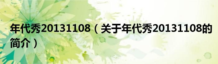 本文關于年代秀20131108的簡介就講解完畢,希望對大家有所幫助。