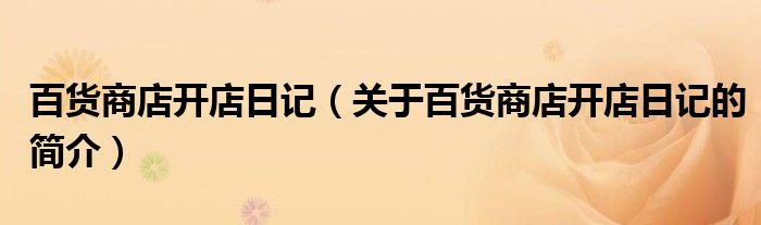 本文關于百貨商店開店日記的簡介就講解完畢,希望對大家有所幫助。