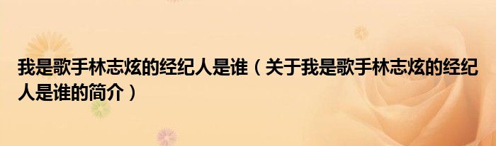 本文關于我是歌手林志炫的經紀人是誰的簡介就講解完畢,希望對大家有所幫助。