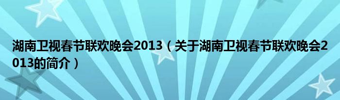 本文關于湖南衛視春節聯歡晚會2013的簡介就講解完畢,希望對大家有所幫助。