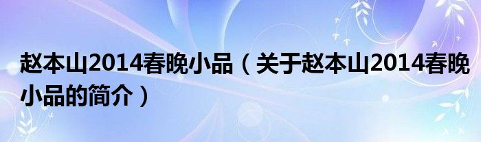 本文關于趙本山2014春晚小品的簡介就講解完畢,希望對大家有所幫助。
