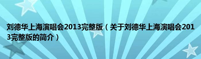 本文關于劉德華上海演唱會2013完整版的簡介就講解完畢,希望對大家有所幫助。