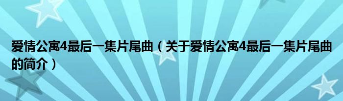 本文關于愛情公寓4最后一集片尾曲的簡介就講解完畢,希望對大家有所幫助。