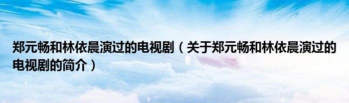 大家好,鄭元暢和林依晨演過的電視劇,關于鄭元暢和林依晨演過的電視劇的簡介很多人還不知道,現在讓我們一起來看看吧!