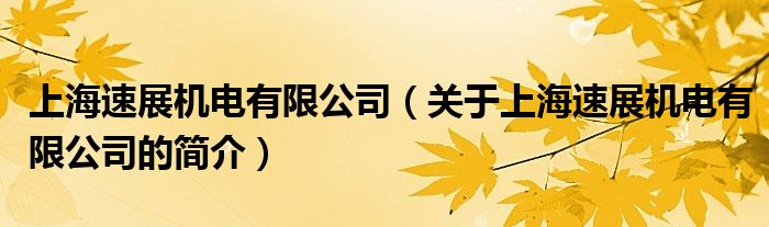本文關(guān)于上海速展機(jī)電有限公司的簡(jiǎn)介就講解完畢,希望對(duì)大家有所幫助。