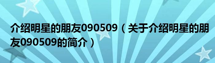 本文關于介紹明星的朋友090509的簡介就講解完畢,希望對大家有所幫助。