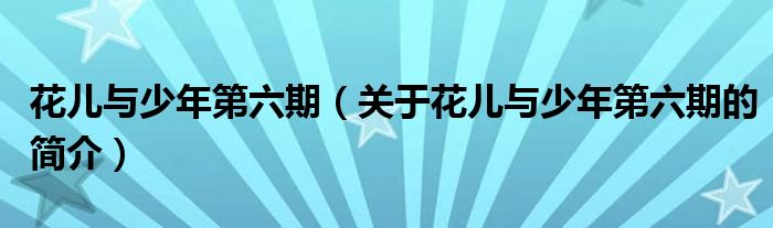 本文關于花兒與少年第六期的簡介就講解完畢,希望對大家有所幫助。