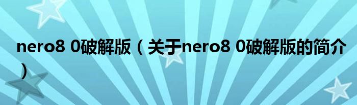 大家好,nero8 0破解版,關(guān)于nero8 0破解版的簡(jiǎn)介很多人還不知道,現(xiàn)在讓我們一起來看看吧!