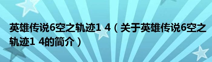 本文關于英雄傳說6空之軌跡1 4的簡介就講解完畢,希望對大家有所幫助。