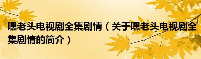 本文關(guān)于嘿老頭電視劇全集劇情的簡介就講解完畢,希望對大家有所幫助。