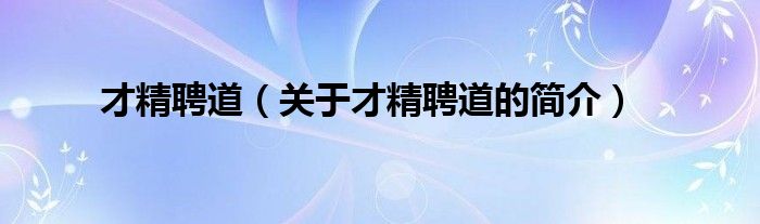 大家好,才精聘道,關于才精聘道的簡介很多人還不知道,現在讓我們一起來看看吧!