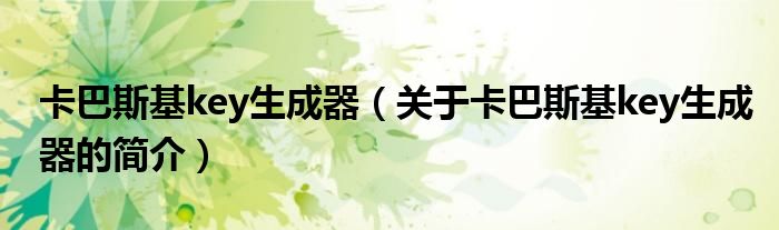 本文關于卡巴斯基key生成器的簡介就講解完畢,希望對大家有所幫助。