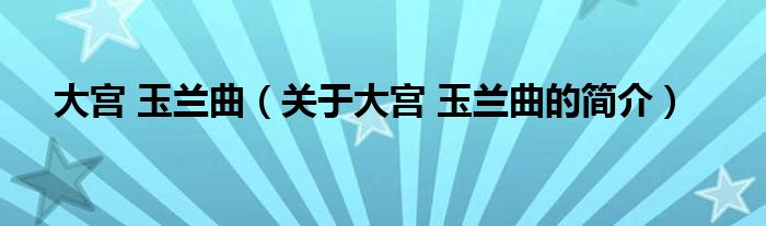 本文關(guān)于大宮 玉蘭曲的簡介就講解完畢,希望對大家有所幫助。