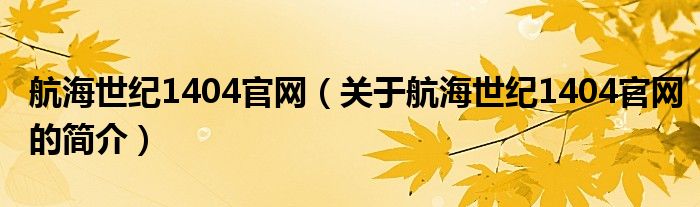 本文關于航海世紀1404官網的簡介就講解完畢,希望對大家有所幫助。