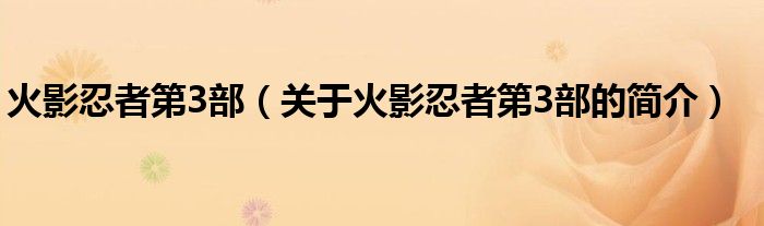 大家好,火影忍者第3部,關于火影忍者第3部的簡介很多人還不知道,現在讓我們一起來看看吧!