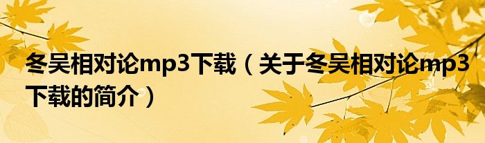 大家好,冬吳相對論mp3下載,關于冬吳相對論mp3下載的簡介很多人還不知道,現在讓我們一起來看看吧!