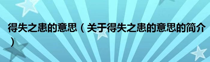 本文關于得失之患的意思的簡介就講解完畢,希望對大家有所幫助。