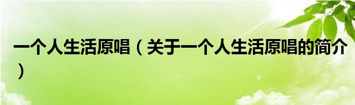 大家好,一個人生活原唱,關于一個人生活原唱的簡介很多人還不知道,現在讓我們一起來看看吧!