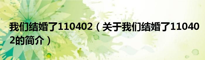 大家好,我們結婚了110402,關于我們結婚了110402的簡介很多人還不知道,現在讓我們一起來看看吧!