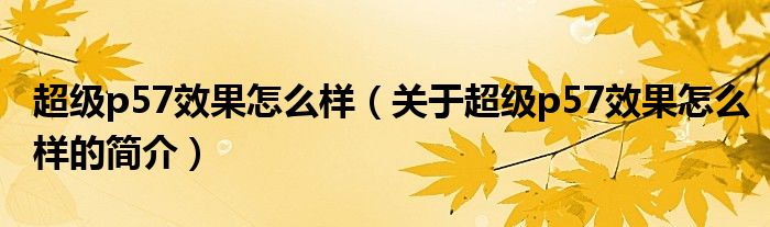 大家好,超級p57效果怎么樣,關于超級p57效果怎么樣的簡介很多人還不知道,現(xiàn)在讓我們一起來看看吧!